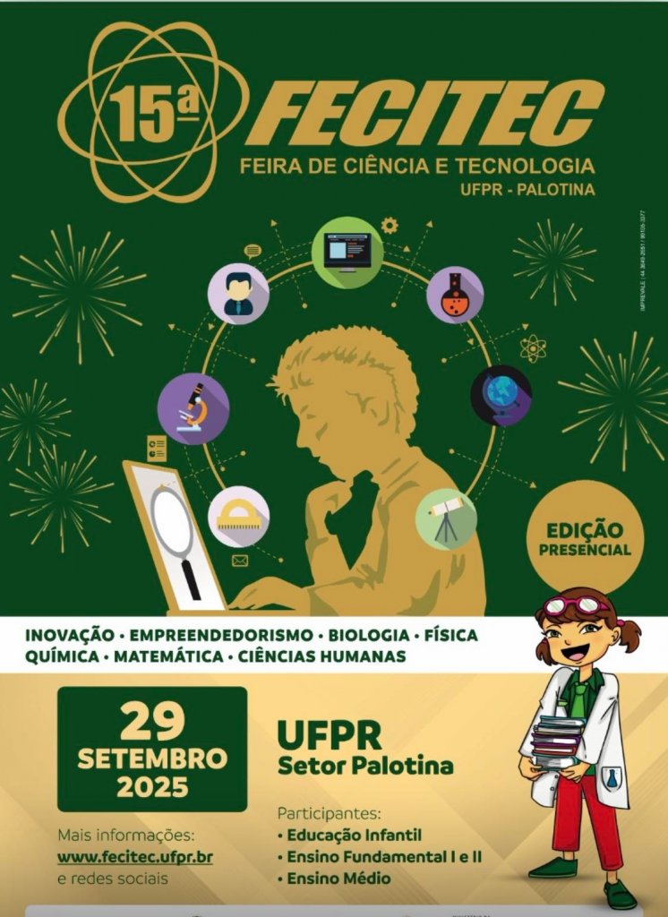 A FECITEC é uma iniciativa da Universidade Federal do Paraná – Setor Palotina, e tem como objetivo fomentar o espírito investigativo, o protagonismo estudantil e a difusão do conhecimento científico de forma acessível e colaborativa.