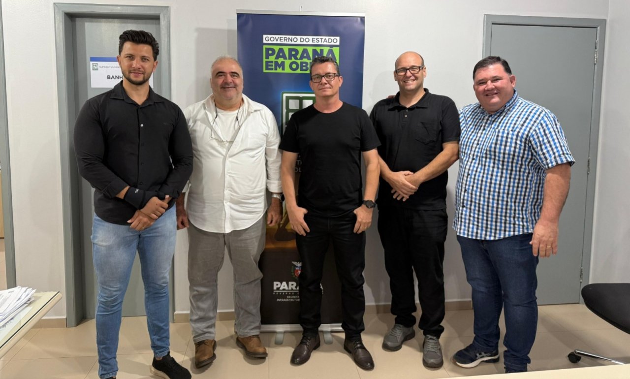 O prefeito Rodrigo Ribeiro protocolou pedido com o Superintendente Regional Oeste do Departamento de Estradas de Rodagem do Estado do Paraná (DER-PR), Charlles Urbano Hostins Júnior, acompanhado dos secretários municipais Rodrigo Fortuoso (Planejamento), Narcelo Morilha Teles (Agronegócio e Meio Ambiente) e Adan Conte (Esportes).