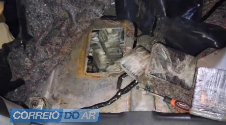 Os policiais constataram que os tabletes da droga estavam ocultos em diversos pontos do interior do veículo, o que exigiu um trabalho minucioso para a retirada do entorpecente.