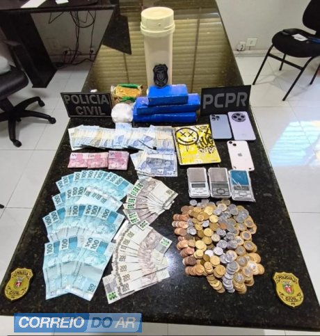 “Durante as buscas, foram apreendidos R$ 7,2 mil em espécie, três balanças de precisão, 160 gramas de cocaína, 405 gramas de crack, 1,7 quilo de maconha e um cano de PVC usado como compartimento para ocultar os entorpecentes”, explica.