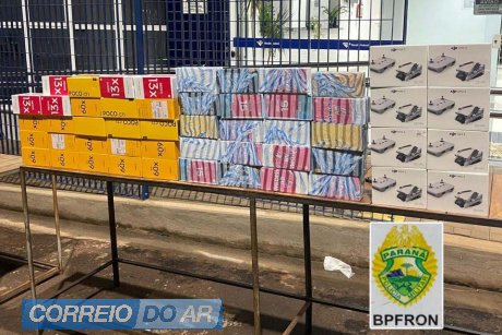 O combate ao contrabando e descaminho registrou 17 ocorrências dessas naturezas. Foram retirados de circulação uma grande quantidade de produtos ilegais, incluindo 30,9 mil pacotes de cigarros, 795 celulares, 49 caixas de perfume, 129 relógios e 8 drones.