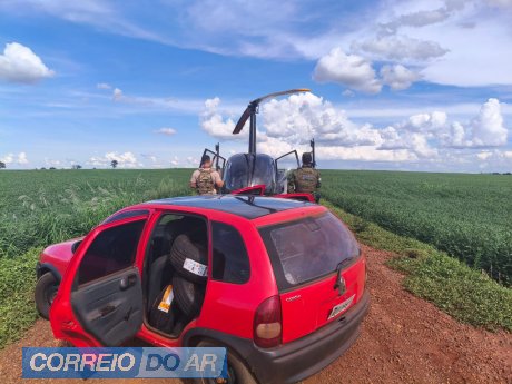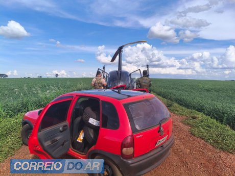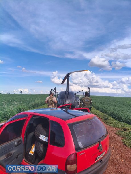 Nesta sexta-feira (16/01), equipes da Polícia Federal (NEPOM/PF), em colaboração com o Grupamento de Operações Aéreas (GOA) da Polícia Civil do Paraná e o Batalhão de Polícia de Fronteira (BPFRON) da Polícia Militar do Paraná, receberam denúncia anônima sobre um veículo GM Corsa, de cor vermelha, que estaria transportando produtos ilícitos na área rural de Guaíra/PR. Após patrulhamento pela região de poderia clandestinos, equipe integrada logrou êxito em localizar veículo saindo de Porto clandestino. Ao ser sinalizado para parar, o condutor desobedeceu e empreendeu fuga, abandonando o veículo carregado em uma área de mata fechada e evadindo-se a pé. No interior do carro, foram encontrados aproximadamente 52 pneus e uma caixa de cigarros, ambos de origem paraguaia. Posteriormente, um indivíduo foi abordado próximo ao local dos fatos e confessou que estava no veículo apreendido, acompanhado do condutor.
