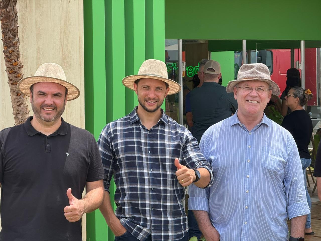 O prefeito esteve acompanhado dos secretários municipais Marcelo Morilha Teles (Agronegócio) e Rodrigo Tortuoso (Planejamento).