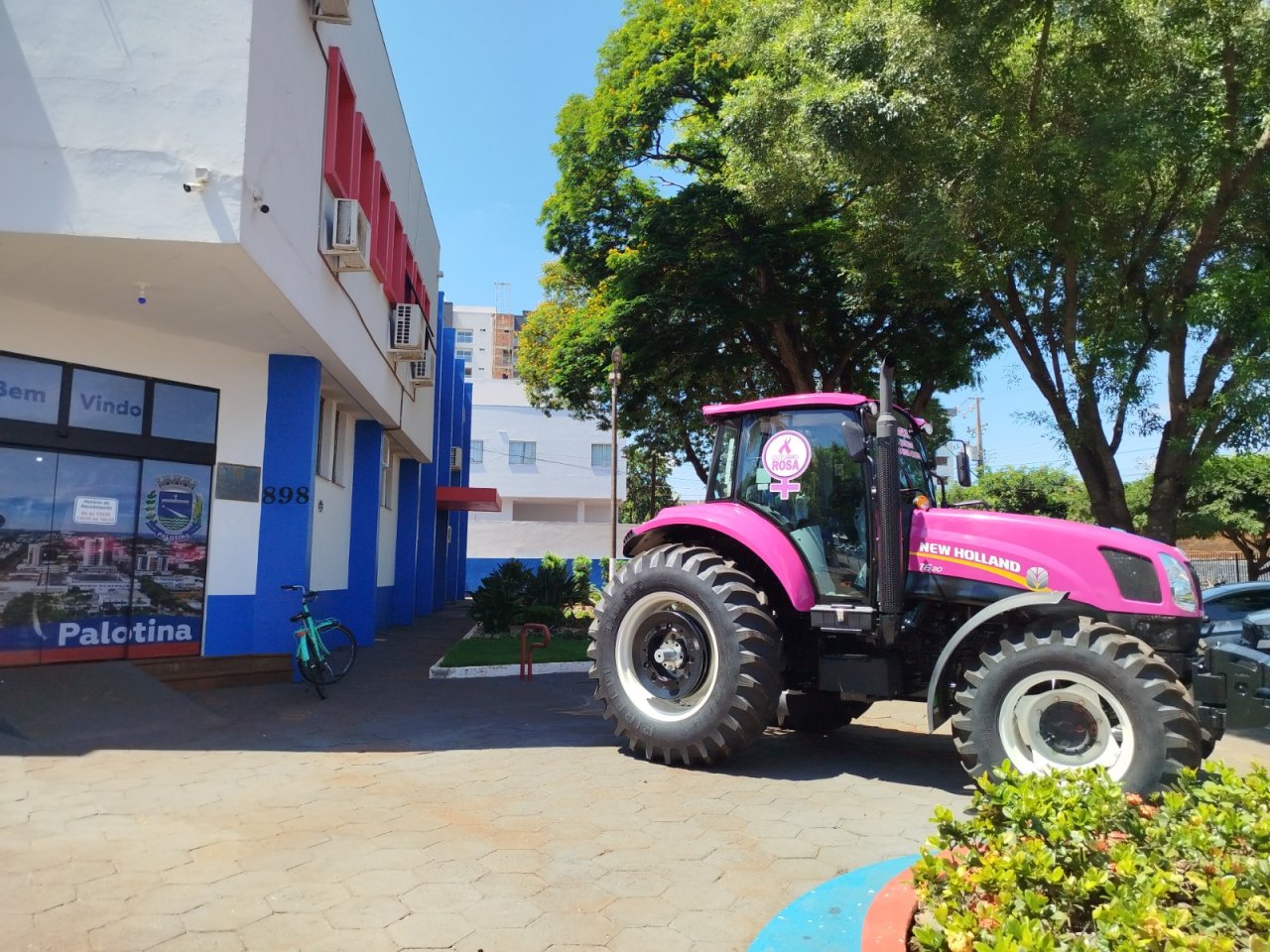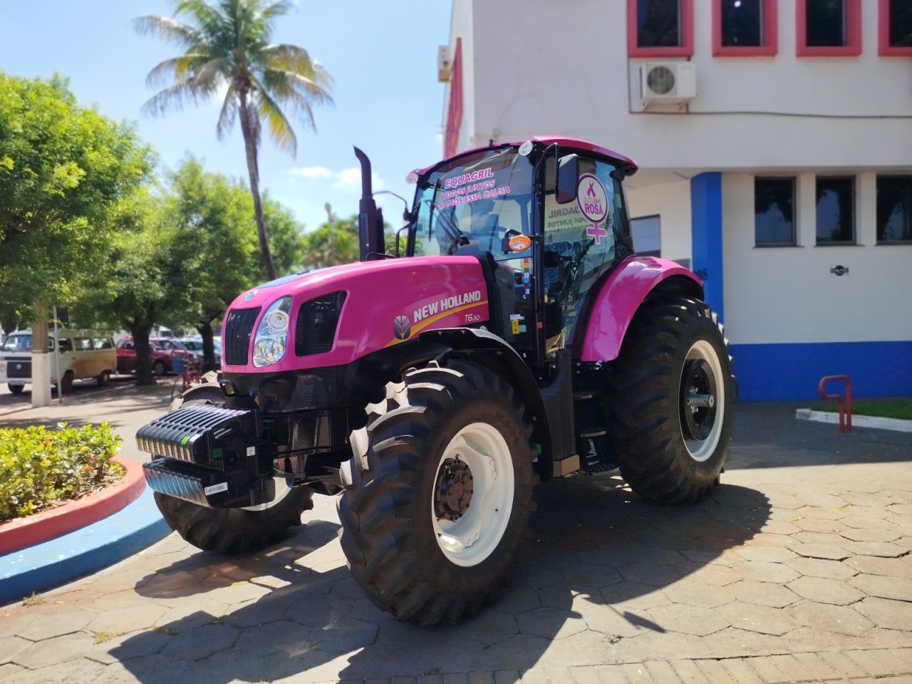 Nesta semana o trator rosa da marca New Holland ficou exposto em frente à Prefeitura de Palotina como forma de chamar a atenção da comunidade para a campanha Outubro Rosa, movimento mundial dedicado à conscientização sobre a prevenção e o diagnóstico precoce do câncer de mama. A iniciativa é da empresa Equagril Equipamentos, em parceria com o município.