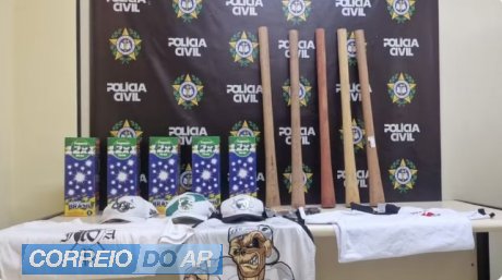 Na residência no bairro do Anil, os policias apreenderam o material, além de roupas e artefatos ligados a torcidas organizadas carioca e paulista.