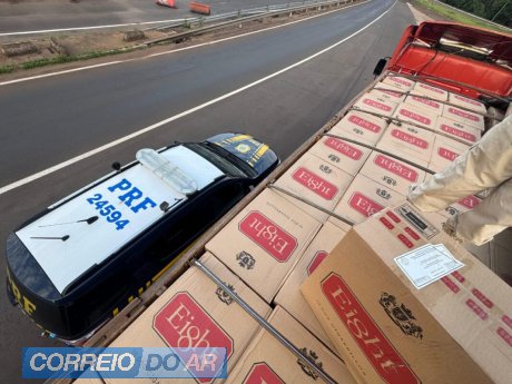 A Polícia Rodoviária Federal (PRF) apreendeu, na tarde de ontem (terça-feira, 7), uma carga de aproximadamente 450 mil maços de cigarros contrabandeados do Paraguai. A abordagem ocorreu no km 350 da BR-163.