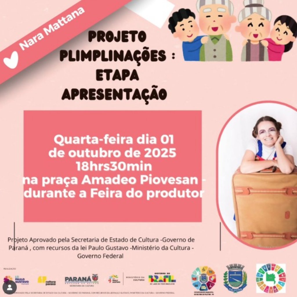 Nesta quarta-feira, 1º de outubro, o público de Palotina poderá conferir a apresentação final do projeto Plimplinações, que acontece às 18h30, na Praça Amadeo Piovesan, durante a tradicional Feira do Produtor. O evento é gratuito e aberto a toda a comunidade.