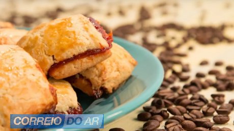 - Após gelado abra a massa com a espessura aproximada de 0,5 cm, passe uma camada de goiabada cascão, cubra com uma camada de massa, passe a cobertura de café e leve para gelar por 3 horas.