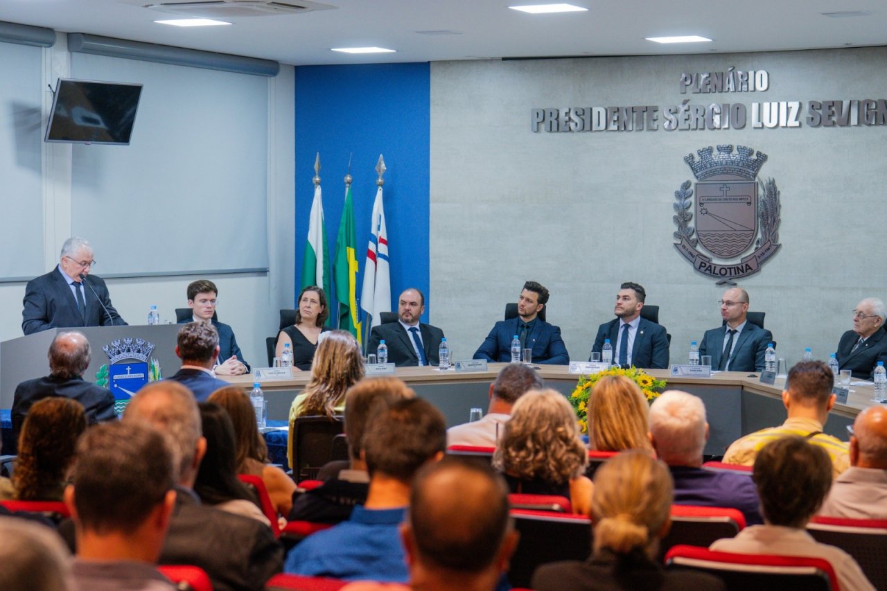 A Câmara Municipal de Palotina realizou na manhã deste sábado (18) uma Sessão Solene para a entrega do Título de Cidadão Honorário ao Engenheiro Agrônomo Cláudio Mário Empinotti, em reconhecimento aos relevantes serviços prestados ao desenvolvimento do município.