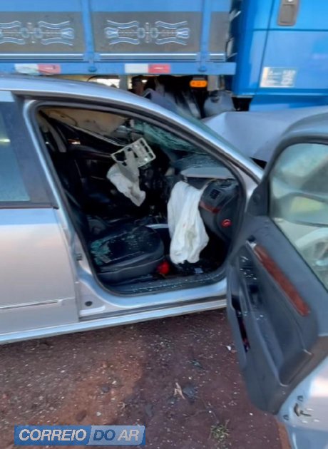 De acordo com informações apuradas no local, o caminhão realizava uma conversão para acessar uma estrada lateral quando acabou fechando a frente do Vectra. O impacto foi forte, resultando em danos de grande monta ao carro, que teve perda total e acionamento dos airbags.