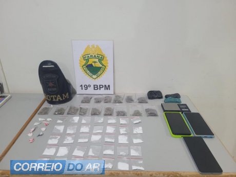 Questionado pela equipe, um dos envolvidos informou que havia mais entorpecentes dentro da casa. No imóvel, os policiais abordaram outros ocupantes e, durante buscas em um dos quartos, localizaram dezenas de porções de drogas já embaladas para comercialização, além de uma balança de precisão em funcionamento.