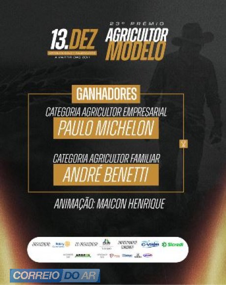 A solenidade de premiação está marcada para às 20h, no Ortolan Gold, ocasião em que serão homenageados os dois produtores selecionados nesta edição: