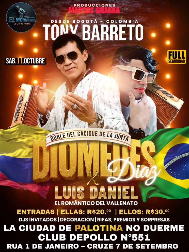Diretamente de Bogotá, Colômbia, o público poderá prestigiar o show do “Doble del Cacique” e de La Junta Tony Barreto, que trarão interpretações dos maiores sucessos do gênero. O evento também contará com a participação do cantor Luis Daniel, conhecido como “o romântico do vallenato”.