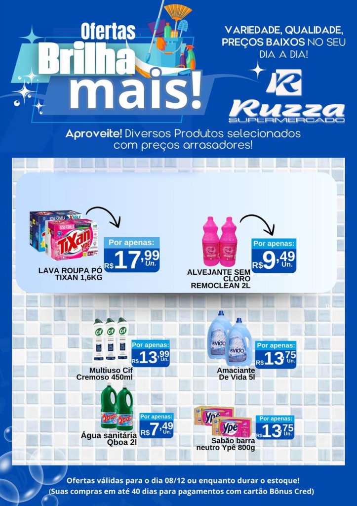 O Supermercado Ruzza preparou uma seleção especial de ofertas para esta segunda-feira (08), com o objetivo de tornar o dia a dia dos clientes ainda mais prático e econômico.