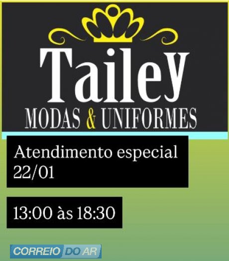 A Tailey Modas e Uniformes comunica que nesta quinta-feira (22) atenderá em horário especial(das 13h às 18h30), com foco na venda de uniformes escolares.