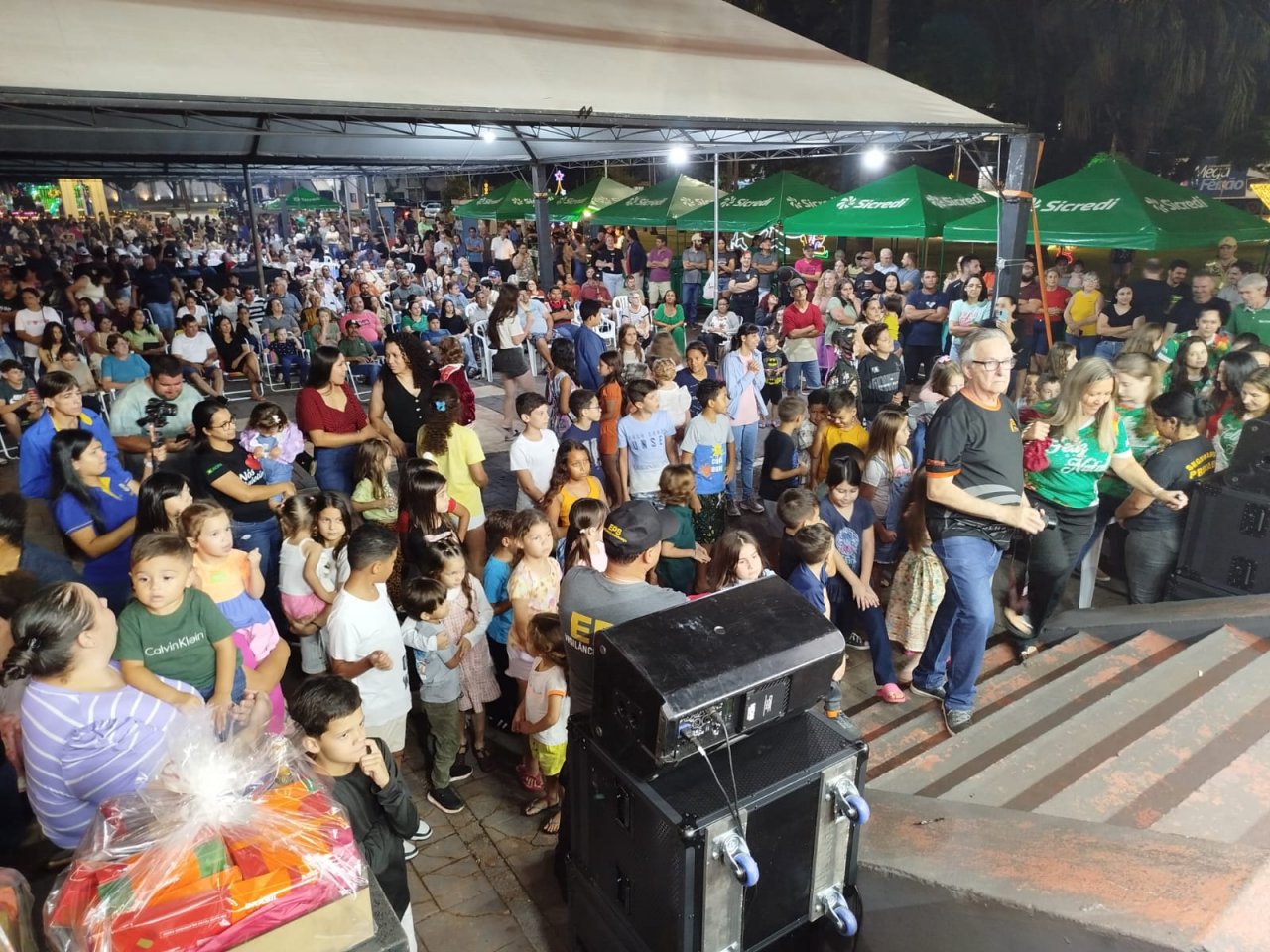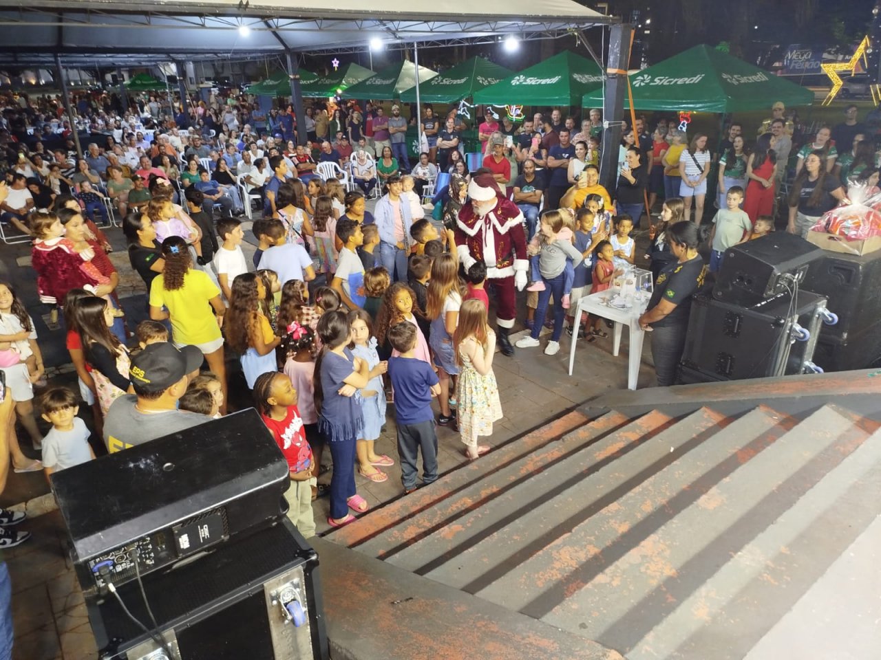 A Praça Amadeo Piovesan se transformou em um verdadeiro cenário de Natal durante o evento promovido pela Associação Comercial, Industrial e Agropecuária de Palotina (ACIPA), que reuniu famílias, crianças e amigos em uma noite marcada por emoção, luzes e celebração. Integrando a programação oficial do Natal 2025, promovida pelo Departamento Municipal de Cultura, a iniciativa levou alegria ao coração da cidade e reforçou o espírito de união entre a comunidade.