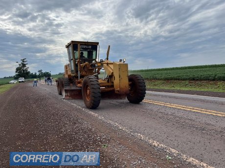 Funcionários da Prefeitura de Maripá auxiliaram na retirada das pedras e na limpeza da pista, com apoio de uma patrola, garantindo novamente a segurança do tráfego no trecho.