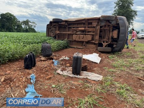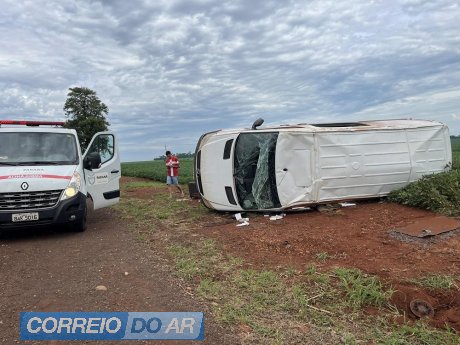 Van capota após derrapar sobre pedras espalhadas na PR-182, entre Maripá e Toledo
