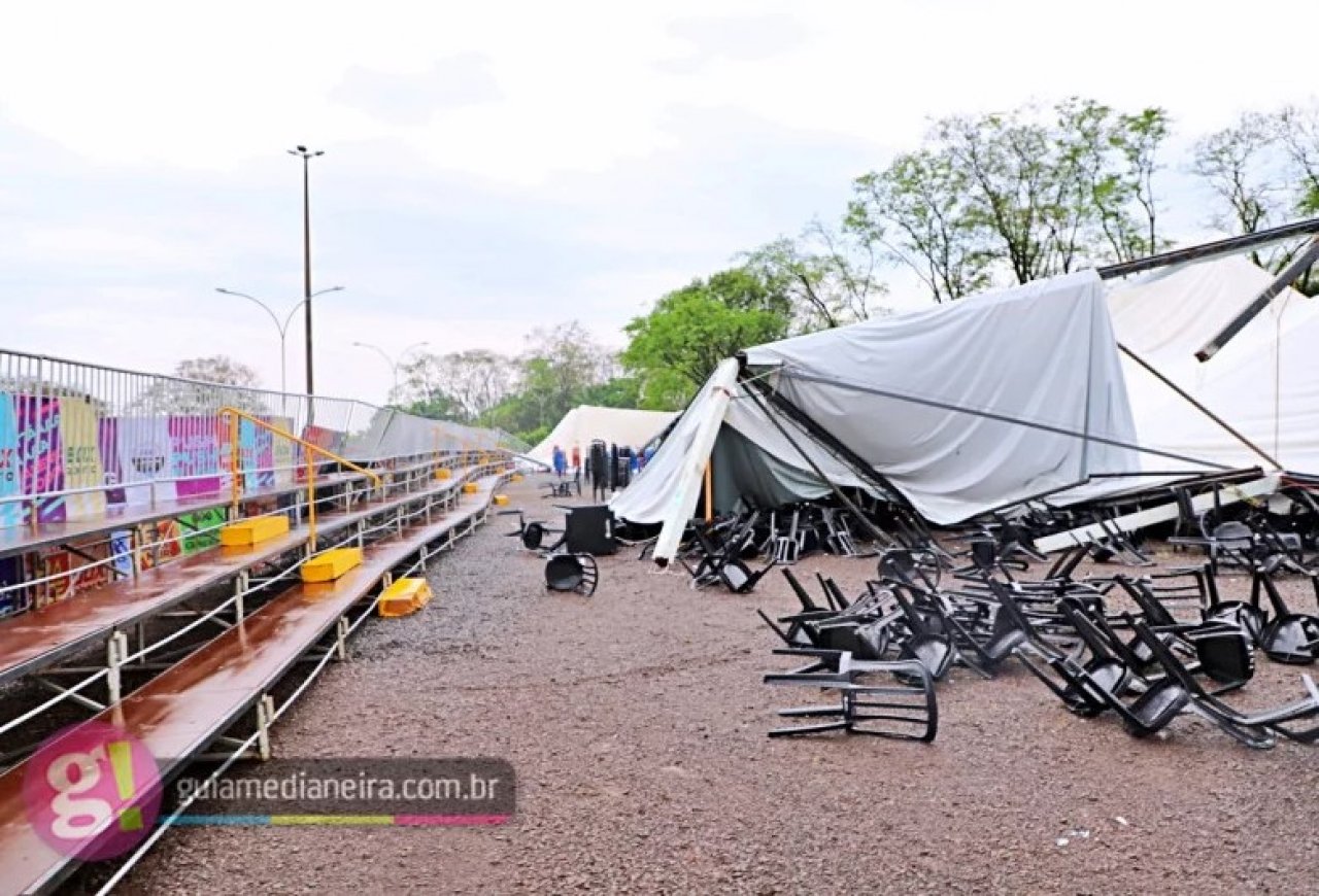 O turismo religioso itaipulandiense amanheceu abalado. Isto porque a cidade enfrentou um forte temporal na madrugada de quarta-feira (04), que causou sérios danos à estrutura montada para receber romeiros e turistas durante as celebrações da Semana da Padroeira, no Monumento Nossa Senhora Aparecida. Os ventos chegaram a 60 km/h.