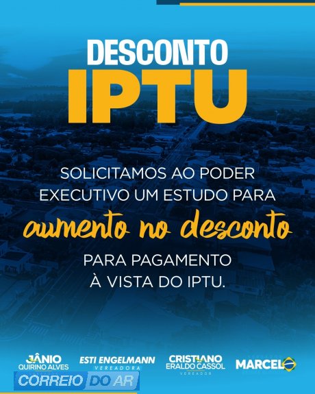 De acordo com a justificativa apresentada, o pedido se baseia na recente correção da Planta de Valores do Município, que resultou em aumentos expressivos nos valores cobrados. Diante disso, os vereadores propõem que a Prefeitura avalie formas de aliviar o impacto para os contribuintes, incentivando o pagamento e reduzindo o risco de inadimplência.
