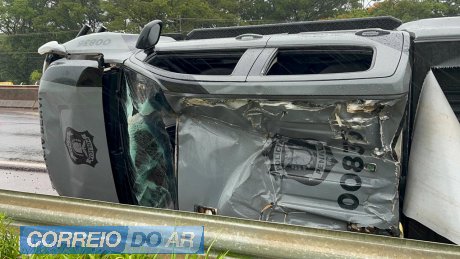 Na caminhonete, modelo S10, estava somente quatro policiais que seguiam em missão, o veículo parou de lado na rodovia e bastante danificado. Um policial de 53 anos sofreu ferimento na cabeça, foi socorrido no local e encaminhado para atendimento médico.